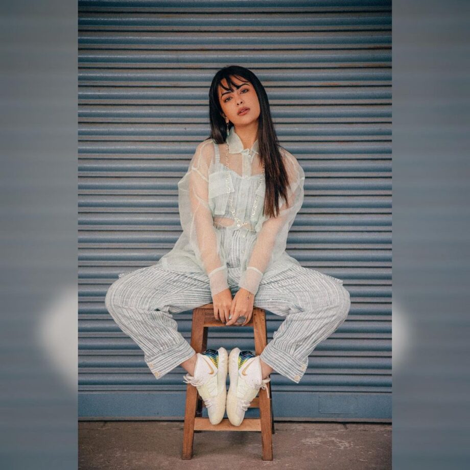 4) Avika’s sassy avatar in a white and grey crop top and pants along with a transparent baggy shirt. See pics