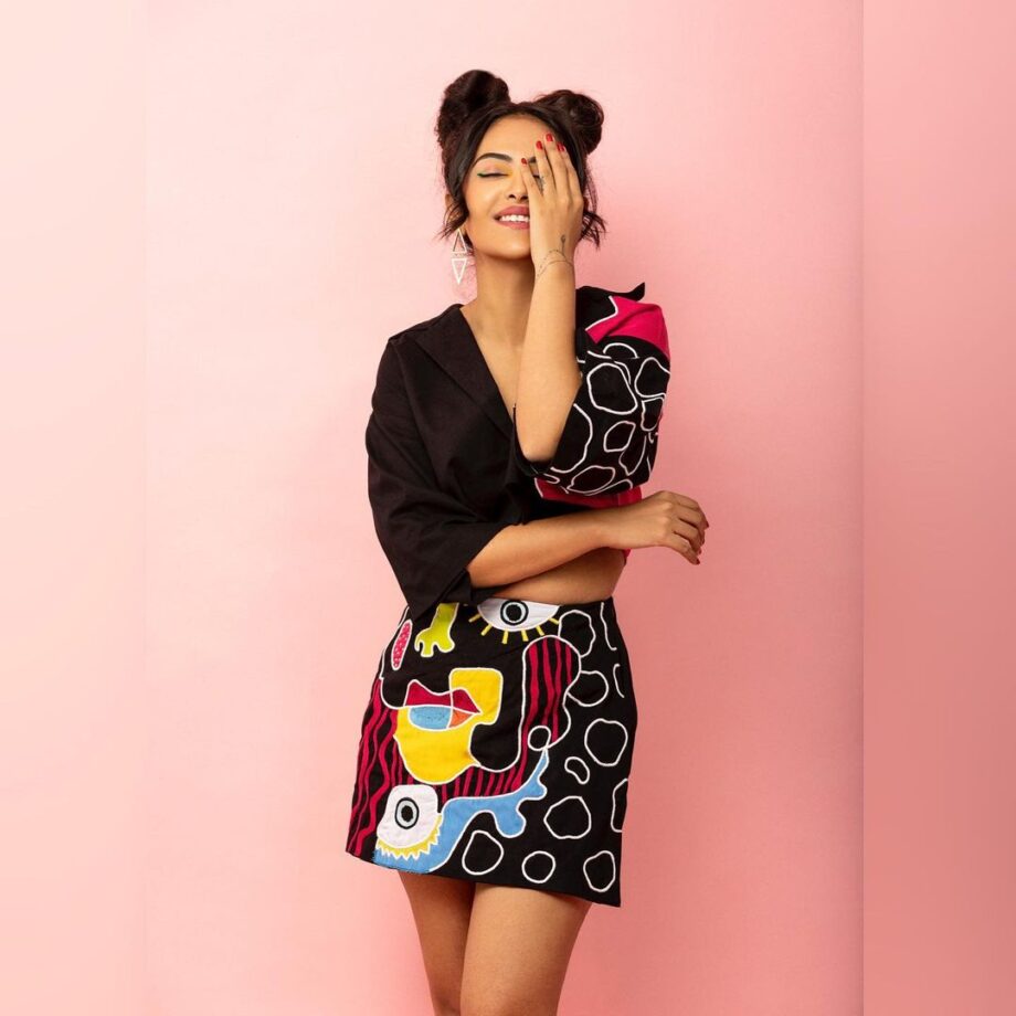 3) Avika Gor wore a printed black crop top and matching mini skirt for this sunny weather. See pics